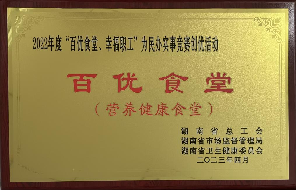 又訊,在湖南省2022年度“百優食堂、幸福職工”為民辦實事競賽創優活動中,公司四化大廈食堂榮獲湖南省“百優食堂”稱號。