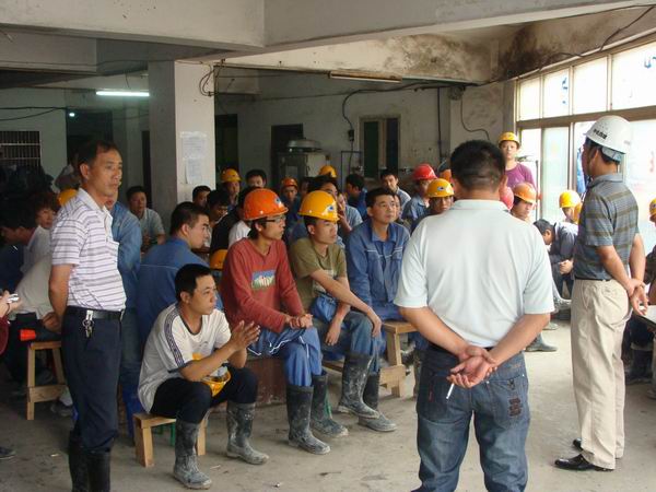 書記施建華、工會主席洪東林到現場作動員,強調:該工程是亞運會的配套工程、為廣州市民造福千代的工程,在最后的20天里,要發揚四化建人能吃苦、打硬戰的作風,發揚“團結拼搏求實奉獻”的企業精神,干出中央大企業的風采。項目部現場經理陳岳剛帶頭表決心:一定完成上級交辦的任務,讓廣州市民放心,讓四化建公司放心!克服種種困難,大干苦干也要拿下這硬骨頭!京溪凈水工程是廣州市亞運項目中最難的工程,該工程量有4000多萬元,是老城區里地下-18米的全封閉的項目。進出只有一個3米高的通道,所有設備全部由此運進,大型設備吊車等都無法使用,全靠人力和手工操作。加上還有土建交叉作業,空間狹小,作業面粉塵大,燥音響,天氣悶熱,通風差,施工環境相當惡劣。廣州市亞運項目的領導就是看中四化建能打硬仗的隊伍,才放心交給四化建來完成。因此,該工程的政治意義、社會效益大于經濟利益。