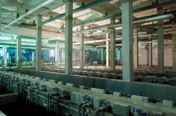 廣州市京溪地下凈水廠工程。該工程日處理污水10萬噸,安裝工程約4200萬元。設(shè)計采用先進的“膜生物反應(yīng)器MBR污水處理工藝”,污水廠出水水質(zhì)達到一級A,相當于地表Ⅳ類水以上,稍作過濾即可飲用。整套處理工藝設(shè)備采用“地下全埋式”,征地面積大為縮小,僅相當于傳統(tǒng)工藝正常占地面積的1/10。整個廠設(shè)在地下,分2層,最深-20米,目前是采用此種工藝全球最大的地下污水處理廠。