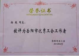 9月30日,在岳陽(yáng)市總工會(huì)召開(kāi)的第六屆代表大會(huì)上傳出喜訊。公司工會(huì)榮獲“岳陽(yáng)市先進(jìn)基層工會(huì)”,公司黨委書(shū)記、董事長(zhǎng)劉德輝被岳陽(yáng)市總工會(huì)授予“岳陽(yáng)市最佳工會(huì)工作支持者”榮譽(yù)稱號(hào),公司楊艷被岳陽(yáng)市總工會(huì)授予“岳陽(yáng)市優(yōu)秀工會(huì)工作者”榮譽(yù)稱號(hào)。