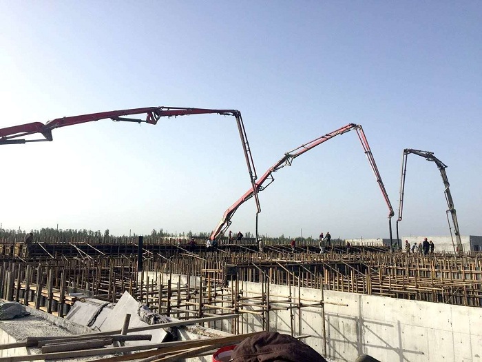 9月8日,根據(jù)當(dāng)?shù)厣添帕?xí)性和前兩次AO池筏板基礎(chǔ)和A區(qū)壁板澆筑的經(jīng)驗,中南分公司喀什博天供排水項目部決定利用難得的陰天進行AO池B區(qū)池壁商砼澆筑。
