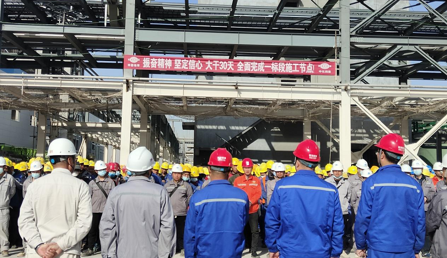 4月8日,由西部公司承建的內蒙古新特硅材料有限公司一期10萬噸高純多晶硅項目,在施工現場舉行“大干30天、全面完成一標段施工節點”動員大會。新特硅材料有限公司指揮部副總指揮宋高杰、候勇,北京華油鑫業總監甘賢江,項目部全體管理人員及作業人員參加大會。