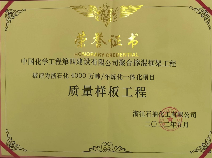華東公司浙石化二期丁苯橡膠項(xiàng)目獲質(zhì)量樣板工程