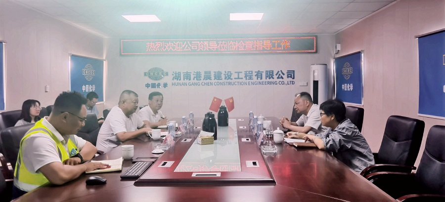 8月10日下午,頂著炎炎熱日,公司黨委副書記、總經理周鴻,安全總監、質量安全環境部主任朱文捷一行到港晨公司承建的岳陽自貿片區EOD數字經濟產業綜合體建設項目部檢查指導工作。