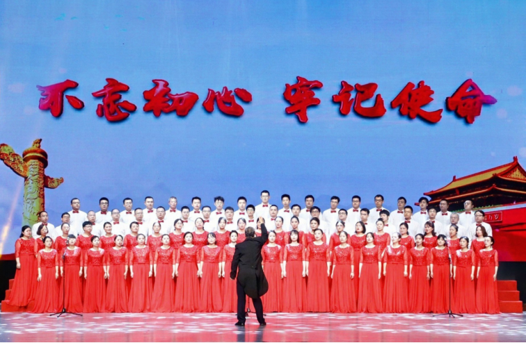 公司機(jī)關(guān)員工表演的大合唱《不忘初心》在眾首翹盼中閃亮登臺(tái)。公司員工引吭高歌,謳歌了公司70周年無(wú)論走過(guò)千山萬(wàn)水、穿越雨雪風(fēng)霜始終初心如磐、使命如炬。前半段曲調(diào)委婉動(dòng)聽,引人入勝,后半段轉(zhuǎn)向激昂,音符仿佛山洪噴涌一瀉千里,現(xiàn)場(chǎng)的氣氛瞬間被點(diǎn)燃,鏗鏘有力的合唱聲從臺(tái)上傳來(lái),帶動(dòng)場(chǎng)下的觀眾沉浸其中,紛紛拿出手機(jī)記錄下這一刻。