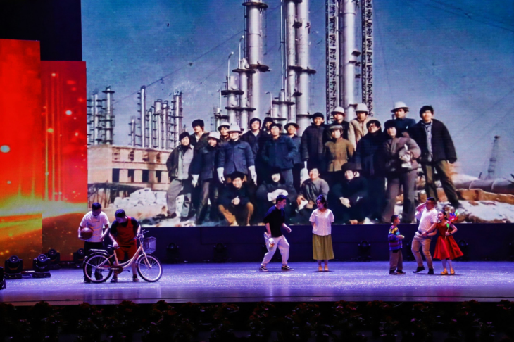 港晨公司傾情演繹的舞臺(tái)劇《追光·建未來(lái)》再現(xiàn)了四化建人在70年征程中,為國(guó)家建設(shè)夜以繼日奮斗的動(dòng)人場(chǎng)景,演繹了化建人鳳凰涅槃、浴火重生的宏圖壯志,歌頌了建設(shè)者們向著美好生活踔厲奮發(fā)的豪邁氣概。
