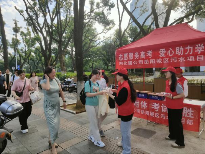 為更好地服務(wù)廣大高考考生及家長,項(xiàng)目部志愿者們專門在岳陽市第十四中學(xué)高考考點(diǎn)附近搭建遮陽棚,設(shè)置愛心服務(wù)點(diǎn),為考生提供礦泉水、防蚊避暑用品和基礎(chǔ)醫(yī)藥器材等助考物品,并自發(fā)組建黨員先鋒車隊(duì)、工人先鋒車隊(duì)、青年先鋒車隊(duì)、現(xiàn)場服務(wù)隊(duì)協(xié)助進(jìn)行愛心送考、文明交通勸導(dǎo)等志愿服務(wù)。