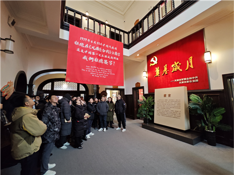 一條條閃耀著紅色光輝的“尋訪路線”,織就起青馬學(xué)員在津沽大地的“紅色學(xué)習地圖”。踏入平津戰(zhàn)役紀念館、周恩來鄧穎超紀念館,青馬學(xué)員通過珍貴的革命文物、紅色影像以及震撼的實景搭建,更加真切地了解到革命先輩們的英勇事跡;觀看天津張園“沉浸式”演繹展《津門往事》,體驗實景“解密式”《破曉》項目,青馬學(xué)員在“頭腦風暴”中“解鎖”展廳故事,厚植愛國情懷。學(xué)習期間,還開展了“重走長征路”“黨史一點通”等紅色素質(zhì)拓展活動。