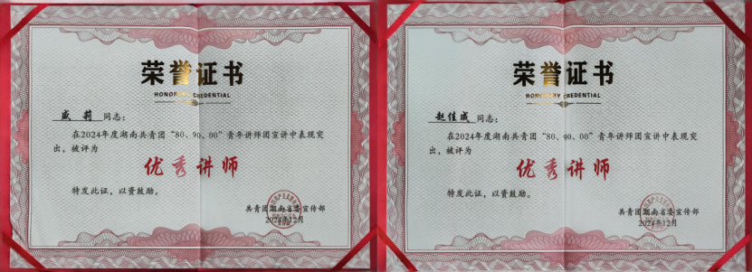近日,共青團(tuán)湖南省委召開(kāi)“理 XIANG 青年”新時(shí)代湖湘青年理論學(xué)習(xí)年度示范宣講會(huì)。會(huì)上,公司青年盛莉、趙佳成榮獲“湖南省2024年度優(yōu)秀講師”稱(chēng)號(hào)。