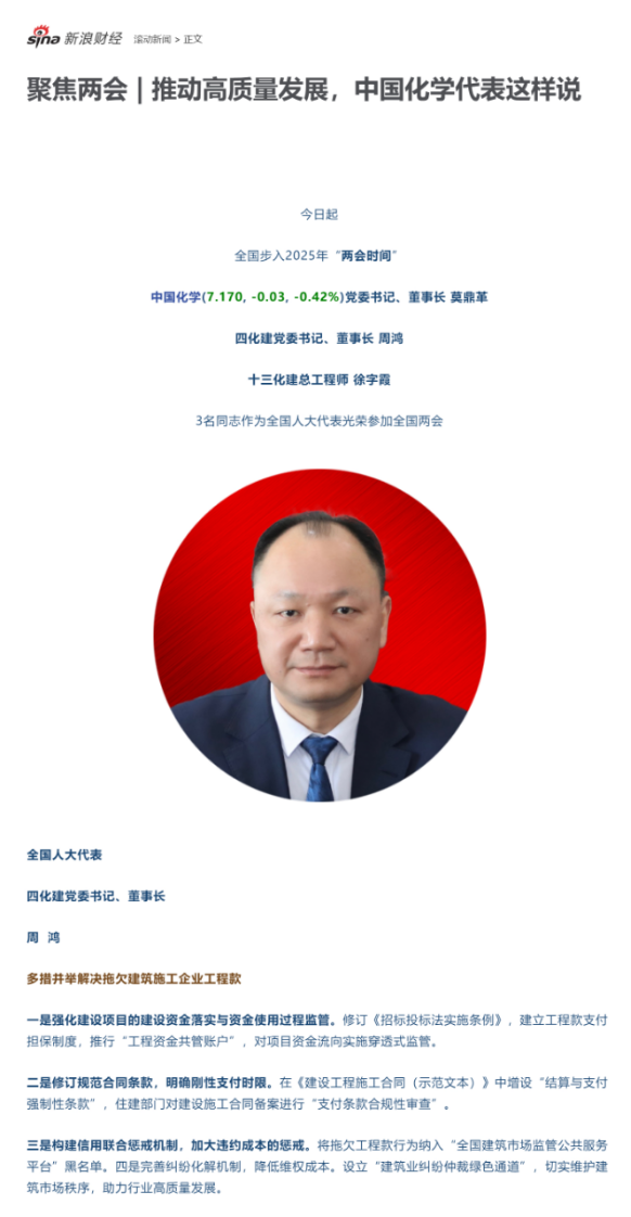 3月4日,新浪財(cái)經(jīng)報(bào)道周鴻的建議:多措并舉解決拖欠建筑施工企業(yè)工程款。
