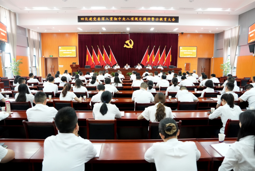“中央八項規定是全面從嚴治黨的‘金色名片’,必須以釘釘子精神一抓到底?!惫军h委書記、董事長周鴻在動員部署會上強調,“要通過學習教育,讓黨員干部從思想上固本培元,以優良作風護航企業高質量發展。”