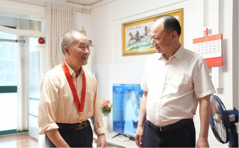 在中國共產(chǎn)黨成立104周年之際,6月26日,中國化學(xué)四化建黨委書記、董事長周鴻看望慰問老黨員曾道群、王道南,向他們頒發(fā)“光榮在黨50年”紀(jì)念章,代表公司黨委向他們致以崇高敬意和誠摯問候,感謝他們?yōu)楣景l(fā)展作出的貢獻(xiàn)。