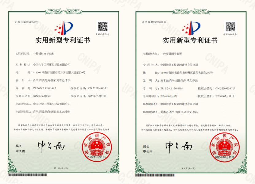 近日,西部公司技術(shù)創(chuàng)新喜結(jié)碩果,自主研發(fā)的“一種板樁支護(hù)結(jié)構(gòu)”“一種流量調(diào)節(jié)裝置”兩項(xiàng)技術(shù)分別獲國家知識產(chǎn)權(quán)局實(shí)用新型專利授權(quán)。