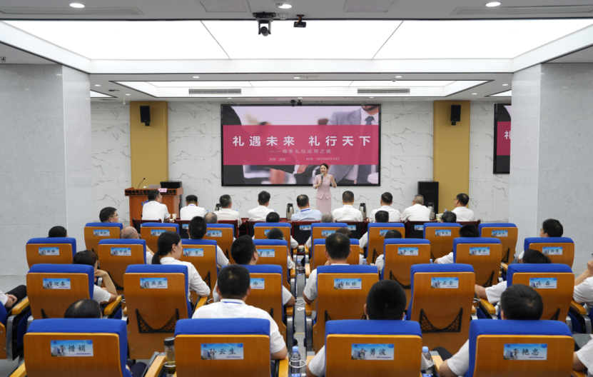 8月10日,公司舉辦商務禮儀培訓,邀請中國政法大學職業導師、管理心理學博士逯瑤授課,以“禮遇未來禮行天下”為主題,系統講解商務禮儀知識。公司領導班子成員、高管、機關各部門負責人和分子公司相關負責人等130人參加。