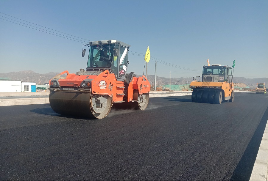 西部分公司蘭州榆中夏緯七路二期工程瀝青路面順利鋪設