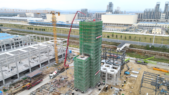 近日,由中國化學四公司華南公司承建的廣東東粵化學科技有限公司20萬噸/年混合廢塑料資源化綜合利用示范性項目順利完成裂解單元(構(gòu)-3)41.95m層梁板混凝土澆筑封頂。