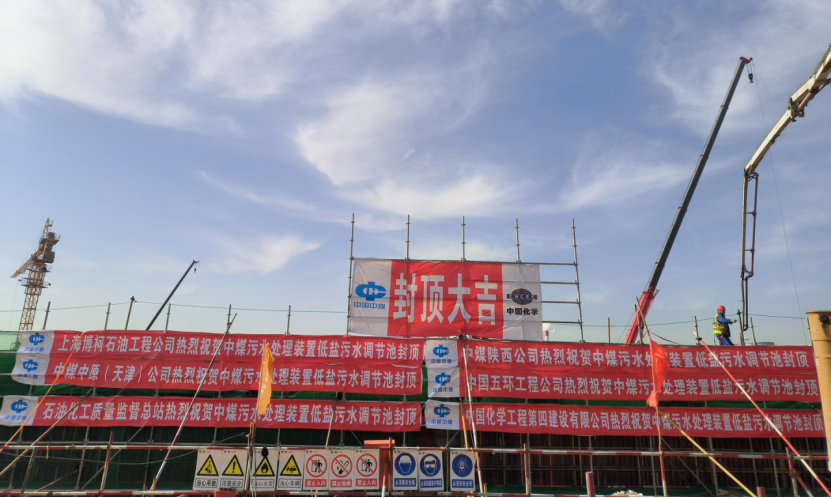 近日,建筑工程公司中煤榆林回用水裝置項目低鹽污水調節池主體順利封頂。